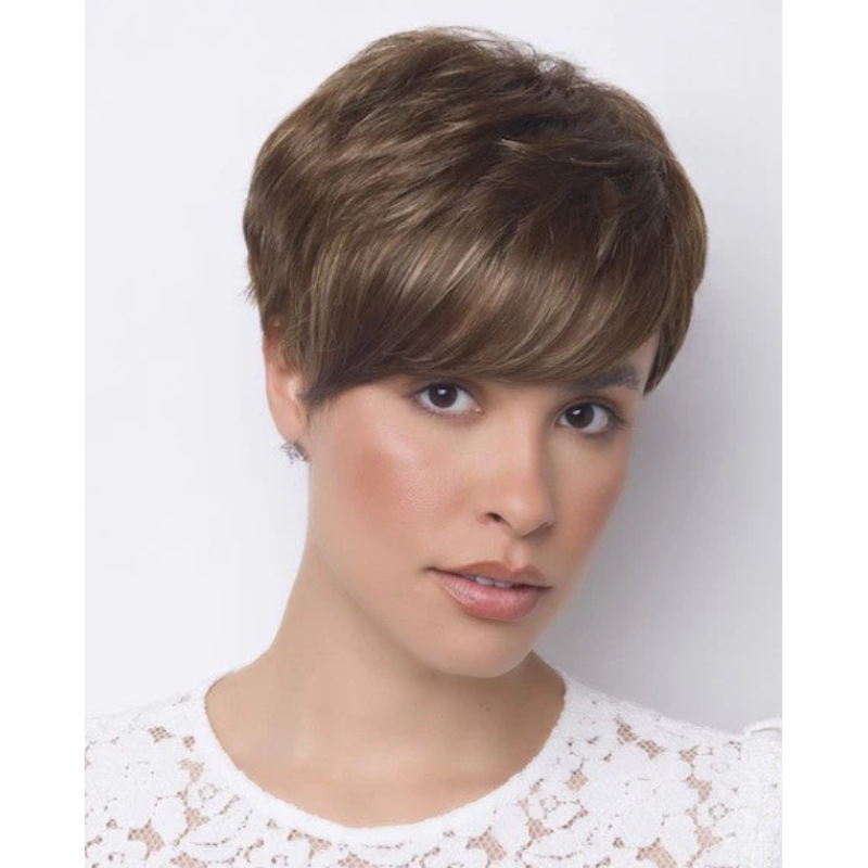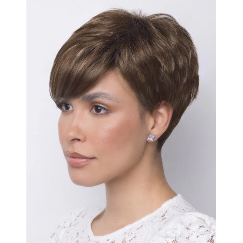 Amara from  Alexander Couture Collection is a short-length synthetic wig. This straight ready-to-wear wig is a pixie cut with a stylish fringe on the side. This style has texture and body that will give you an effortless look.