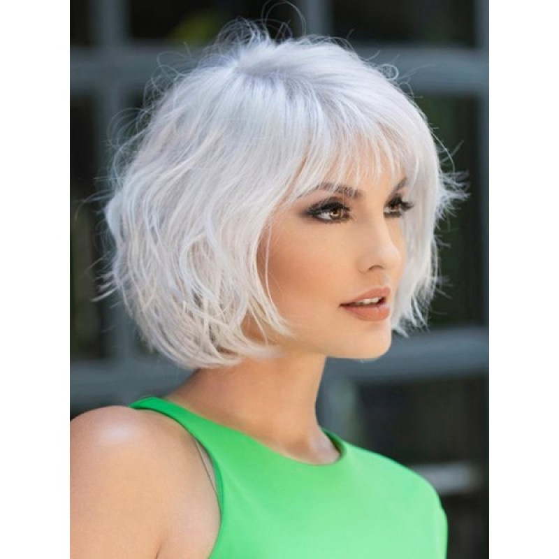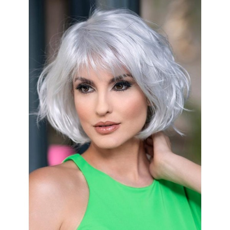Gia by Envy from wigbeauty has feathered bangs and textured waves that give this classic cut a bit of edge.