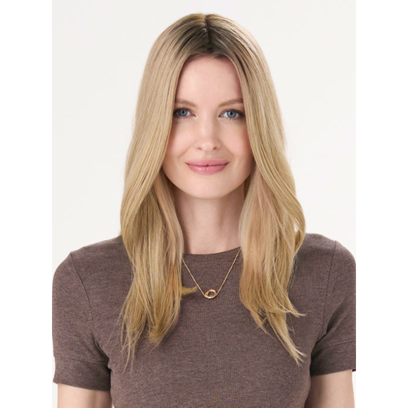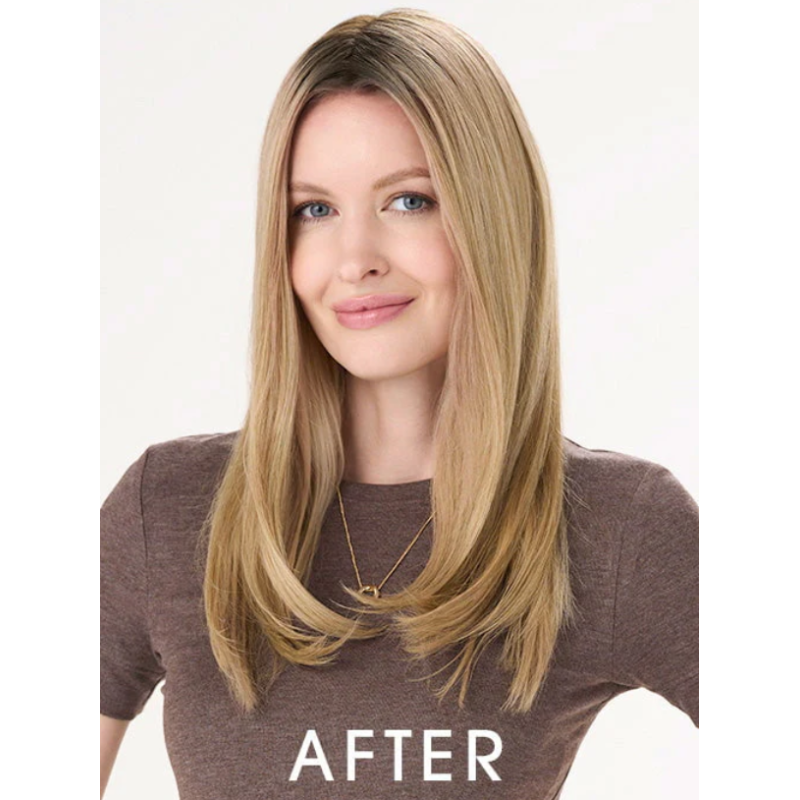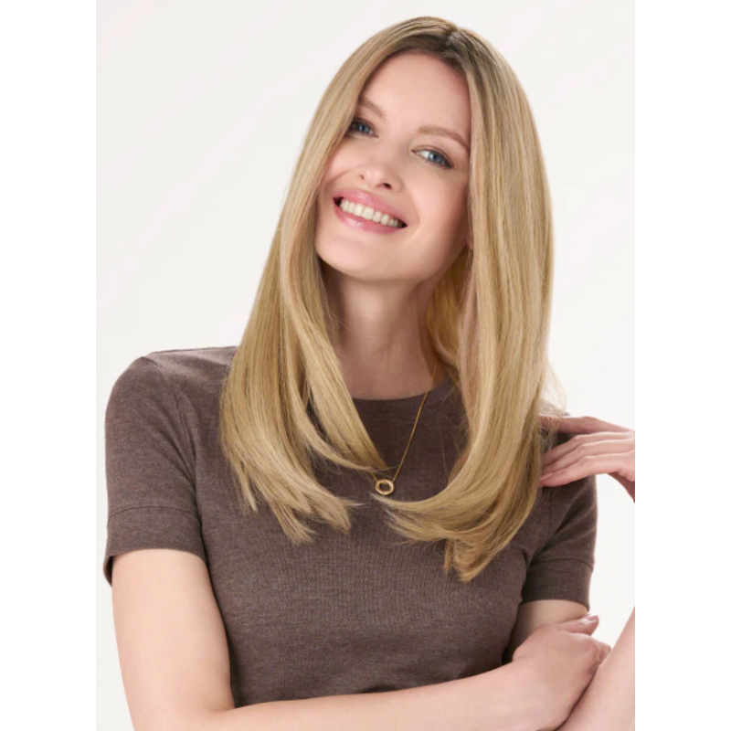 Barely There Straight 16” by Envy is a long hair topper with straight, layered hair for a seamless blend. Part of the Barely There Collection, the partial polyurethane perimeter and five clips help keep the topper securely in place wherever its positioned.