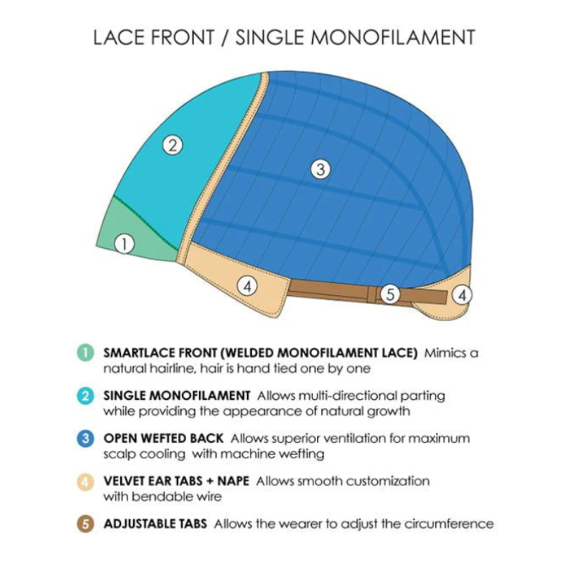 Cap Design: Lace Front, Monofilament Top, Wefted/Basic